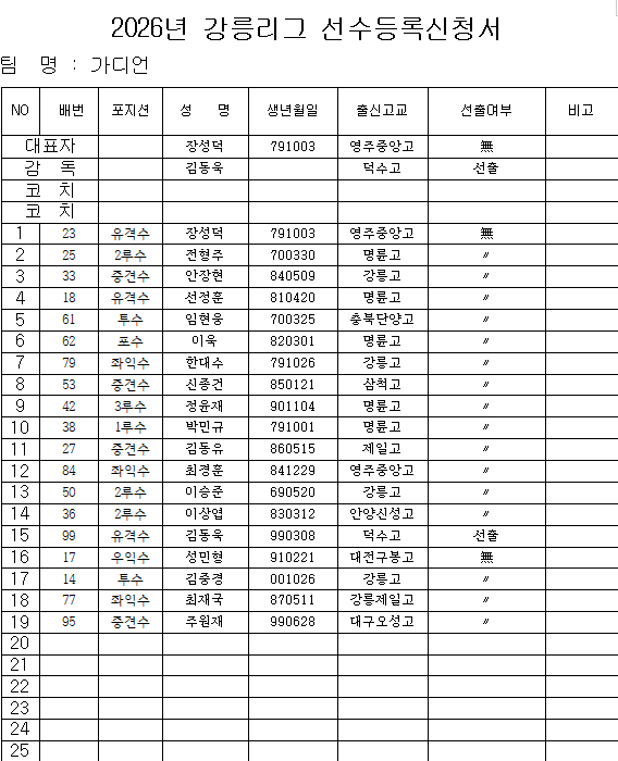 26년 가디언 최초선수명단