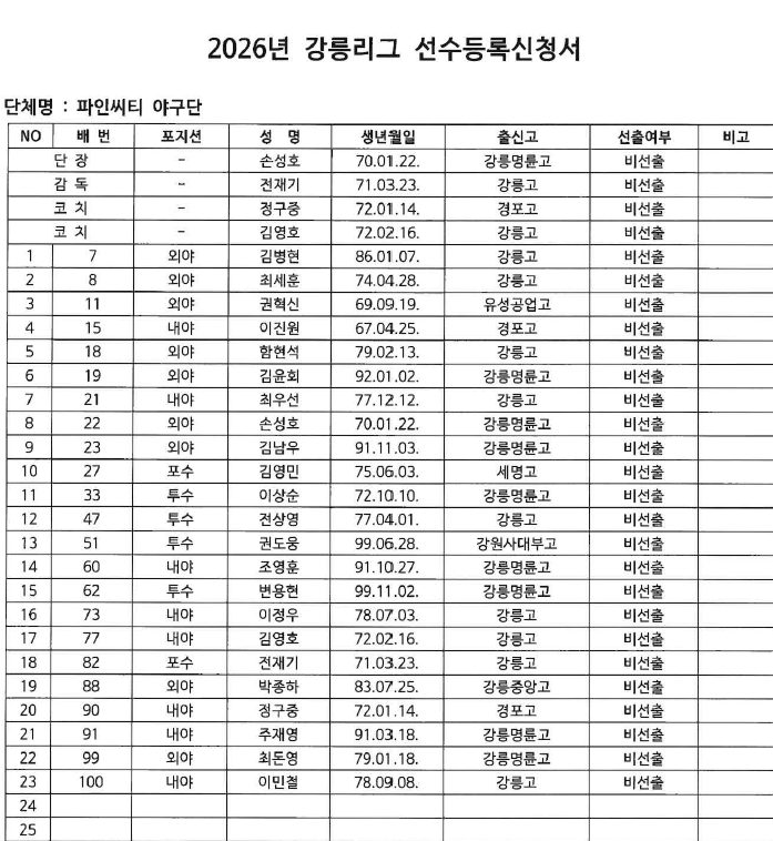 26년 파인시티 최초선수명단